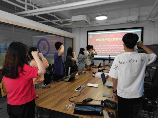 在重温入党誓词环节,高丰奕同志作为北京欧美大片ppt免费大全网络空间安全学院本科生第二党支部分会场领誓人,带领各位党员同志再次庄严向党宣誓。