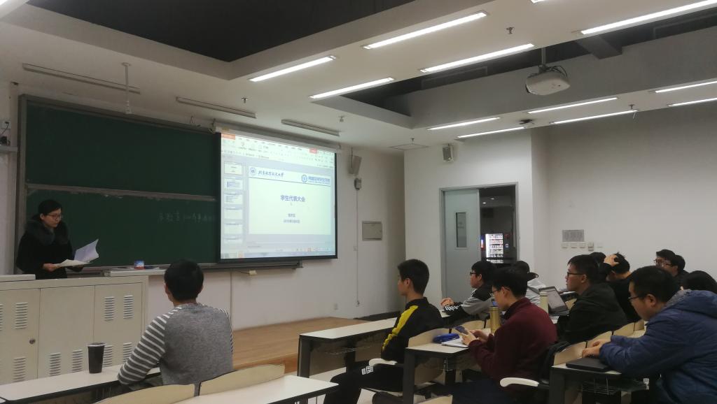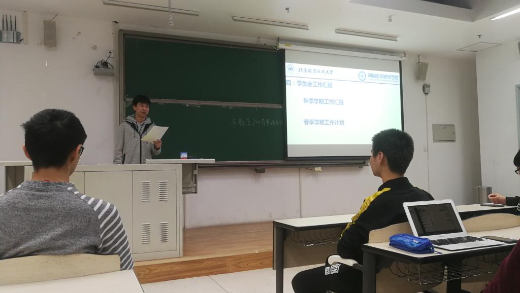2019年3月6日晚7:00,北航网络空间安全学院2017级本科生大班会暨学生代表大会在沙河校区教3-201召开,班会由2017级本科生辅导员管天玉主持,全体同学积极参加。