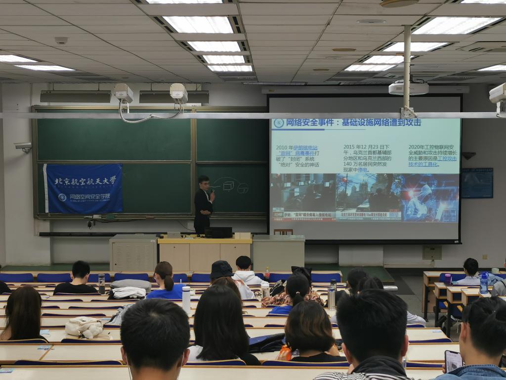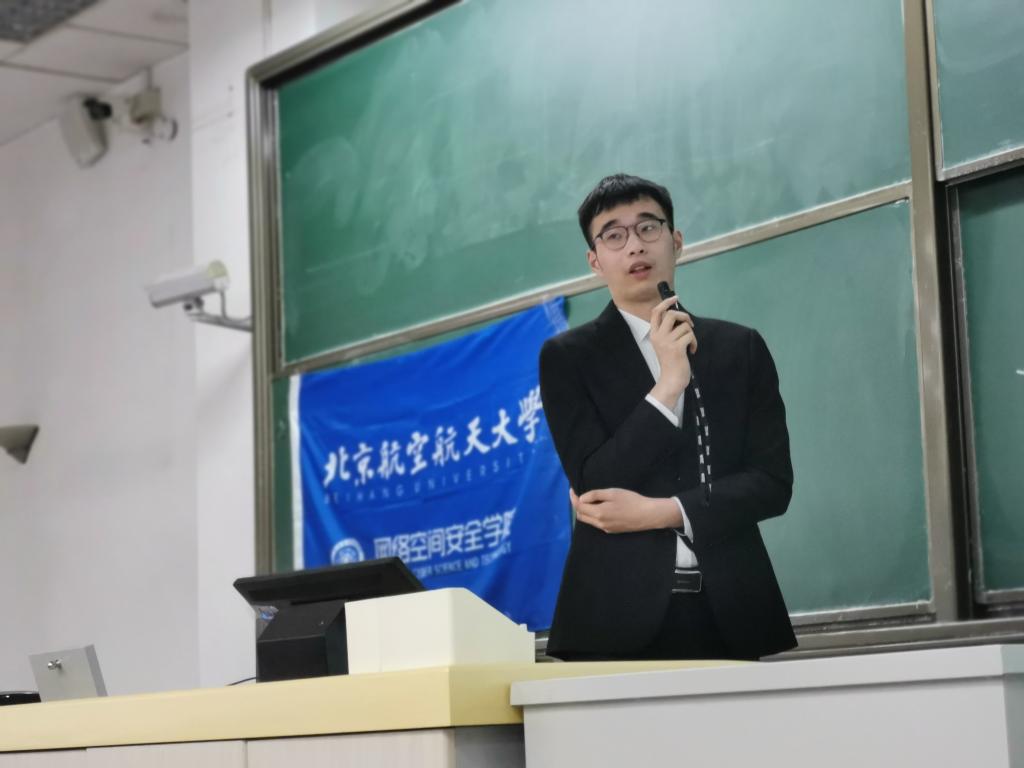为普及网络安全知识,提高同学们网络安全意识和防范水平,9月23日下午,网络空间安全学院分团委网安宣讲团来到北京学院开展网络安全宣传活动。本次宣讲面向北京学院18级160名同学,主讲人是我院17级本科生张舟。张舟大量运用视频等多媒体材料进行试验,充分带动了现场气氛,激起了同学对网络空间安全的兴趣,圆满完成了相关任务,得到了比较好的反馈。