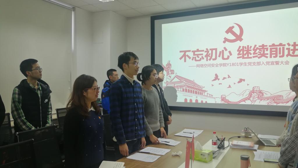 2019年12月13日,中共北京欧美大片ppt免费大全网络空间安全学院Y1801学生党支部召开入党宣誓大会。会议由支部书记战姝宇主持,学院党委书记蒋燕玲同志列席指导。